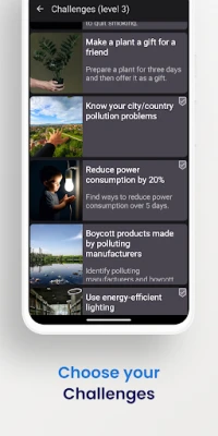 Lai jūsu ceļojums pretim zaļākai videi būtu ne tikai informēts, bet arī aizraujošs, 'Environment Challenge' piedāvā mērķtiecīgus vides izaicinājumus. Katrs paveiktais izaicinājums palīdz jums nopelnīt vērtīgus punktus un virzīties pa līmeņiem, pārvēršot ilgtspējību par personisku piedzīvojumu. Viss šis spēcīgais rīks ir pieejams pilnīgi bez maksas, nodrošinot, ka jūsu uzmanība var pilnībā koncentrēties uz reālu pārmaiņu radīšanu.
