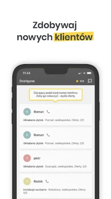 Ar Fixly mobilā aplikācija kļūst par Jūsu personīgo palīgu jaunu pasūtījumu meklējumos. Pārskatiet aktuālos klientu pieprasījumus Jūsu izvēlētajā kategorijā – sākot no celtniecības un transporta līdz pat finanšu konsultācijām vai friziera pakalpojumiem. Izvēlieties tos, kas vislabāk atbilst Jūsu prasmēm, ātri sagatavojiet un nosūtiet piedāvājumu. Fixly nodrošina nepārtrauktu plūsmu ar potenciālajiem darbiem, ļaujot Jums viegli sazināties ar klientiem un efektīvi pārvaldīt savu slodzi.