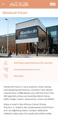 Plānojiet savu ceļojumu ar pilnu pārliecību, izmantojot šajā lietotnē pieejamās lejupielādējamās kartes. Tās aptver visus galvenos tūrisma galamērķus, tostarp Pērtu, Frīmantlu, Rotnestas salu, Pērtas pakalnus, Manduru, Skārboro un visu Rietumaustrāliju, kā arī dzelzceļa un bezmaksas CAT autobusu maršrutus. Iegūstiet arī vērtīgas zināšanas par Pērtas vēsturi, kā arī vispārīgu informāciju par laikapstākļiem, valūtu, slimnīcām un sabiedriskā transporta maršrutiem. Lietotne nodrošina tiešu saikni ar Pērtas apskates objektiem, ekskursijām, automašīnu nomu, pasākumiem un aktivitātēm. Lai pilnīgākai pieredzei, iesakām apvienot šo digitālo ceļvedi ar bezmaksas "Hello Perth Visitor Guide Book" un drukātajām kartēm, kas pieejamas Pērtas lidostā, tūrisma centros un vairāk nekā 200 vietās visā Pērtā.