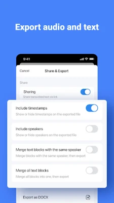Ar Notta jūsu darba plūsma kļūst efektīvāka un produktīvāka. Atzīmējiet svarīgus brīžus ar grāmatzīmēm transkripcijas laikā, lai vēlāk ātri atrastu nepieciešamo informāciju. Pēc sanāksmes vai lekcijas varat ērti rediģēt ierakstus, meklēt konkrētus segmentus ar atslēgvārdiem un eksportēt datus dažādos formātos, piemēram, TXT, DOCX, Excel, PDF vai SRT. Varat arī viegli dalīties ar transkripcijām ar kolēģiem vai draugiem, izmantojot vienkāršu saiti. Notta ir ideāls risinājums pārdošanas speciālistiem, attālināti strādājošajiem, žurnālistiem un ikvienam, kam nepieciešams precīzi un ātri dokumentēt sarunas. Paceliet savu produktivitāti jaunā līmenī ar Notta!