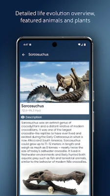 Ienirstiet 15 ģeoloģiskajos periodos, no kuriem katrs ir bagātīgi ilustrēts ar detalizētu informāciju par galvenajiem notikumiem, interaktīvām paleokartēm un saistošiem faktiem par dzīvības formām. Iepazīstieties ar 228 augu un dzīvnieku sugām, kas sniedz kodolīgus aprakstus un interesantus faktus. Saturs ir skaidri strukturēts un viegli saprotams, padarot šo lietotni piemērotu gan plašai sabiedrībai, kas aizraujas ar dabas vēsturi, gan universitātes studentiem, kuri meklē precīzus un pamatīgus pētījumu materiālus.