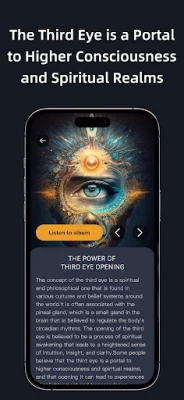 Atklājiet savu iekšējo potenciālu ar "Third Eye" — revolucionāru lietotni, kas paredzēta apziņas paplašināšanai un prāta skaidrības veicināšanai. Tā izmanto unikālu meditācijas mūziku, kas ir īpaši izstrādāta, lai stimulētu epifīzi un aktivizētu trešo aci. Šī mūzika, balstoties uz progresīvām smadzeņu viļņu sinhronizācijas metodēm, palīdz sasniegt dziļus meditatīvus stāvokļus, kas paver ceļu uz paaugstinātu uztveri un jauniem apziņas līmeņiem. Iesaistieties ceļojumā, kas atmodina jūsu dabisko intuīciju un palielina spēju izprast smalkākas enerģijas.
