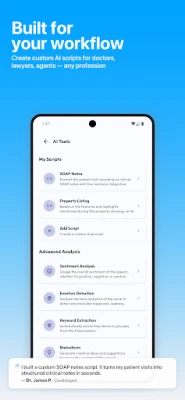 Iedomājieties brīvību fiksēt savas domas, idejas un sarunas ar absolūtu vieglumu, aizmirstot par pildspalvu un papīru. Lietotne Dictate pārvērš šo vīziju realitātē, piedāvājot revolucionāru risinājumu balss ierakstu pārveidošanai precīzā tekstā. Vienkārši nospiediet "Ierakstīt", un Dictate uzreiz pārvērš jūsu runu skaidrā, rediģējamā tekstā, pateicoties tās modernajiem mākslīgā intelekta modeļiem. Pēc tam izmantojiet iebūvēto AI, lai acumirklī tulkotu vai apkopotu iegūto tekstu, padarot informācijas apstrādi nepieredzēti ātru un efektīvu.