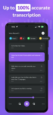 Pateicoties modernajai mākslīgā intelekta tehnoloģijai, Voiser AI precīzi transkribē ierakstus no vairāk nekā 75 valodām, atbalstot plašu formātu klāstu, piemēram, MP3, WAV un MP4. Bet tas nav viss – AI ir integrēts arī automātiskai kopsavilkumu veidošanai, izceļot galvenos punktus un atvieglojot informācijas absorbciju. Jūs varat viegli rediģēt transkripcijas, pievienot virsrakstus, izcelt būtiskas sadaļas un pat pievienot atgādinājumus, lai nekad nepalaistu garām svarīgu detaļu. Šī funkcionalitāte nodrošina, ka jūsu piezīmes ir ne tikai precīzas, bet arī labi strukturētas un viegli pieejamas.